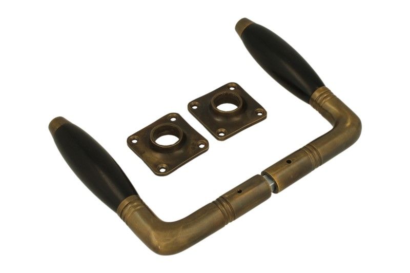 Door handles antique brass ebony pair (1930)