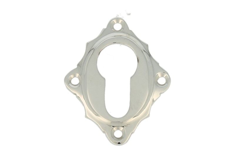 Euro cylinder escutcheon nickel. Diagonally mounted