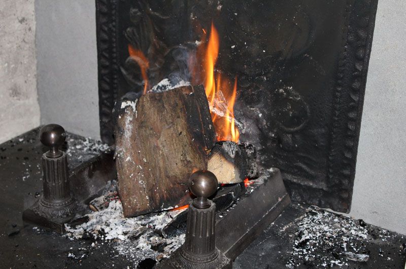 Fire dog cast iron pair. Depth 32 cm Height 17½ cm.