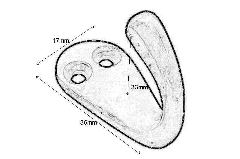 Small wall hook polished brass, depth 33 mm, 17x36mm